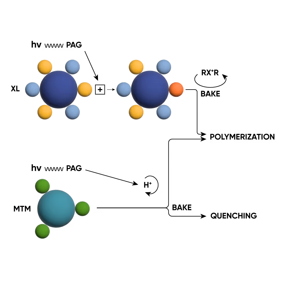 Irresistible Materials develops purpose-built EUV photoresists designed to address the requirements of advanced lithography. At the core of our work is the patented Multi-Trigger Resist (MTR™) platform, which uses advanced chemical approaches to suppress unwanted reactions and deliver more reliable pattern formation under EUV exposure.